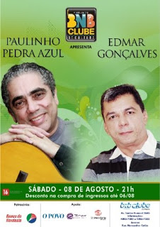 A musicalidade e a poesia mineira e cearense fazem a noite de amanhã, sábado, 08, do Projeto BNB Clube de Cultura com Paulinho Pedra e Edmar Gonçalves.