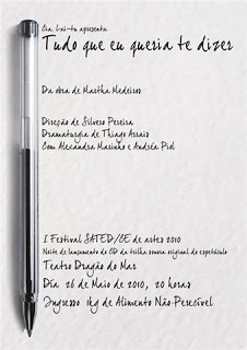 O CD da trilha original da peça “Tudo o que eu queria te dizer”, será lançado nesta quarta, 26, às 20h, no Teatro do Dragão do Mar.