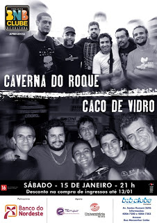 O projeto BNB Clube de Cultura começa o ano com muito rock´n roll. As bandas cearenses Caverna do Rock e Caco de Vidro se apresentam neste sábado, 15, a partir das 21h.