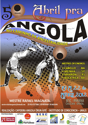 Nos demais dias os mestres convidados: Cabello e Boca Rica da Bahia, Meinha de São Paulo e Marron do Rio de Janeiro trarão sua experiência e conhecimentos para o V Abril pra Angola.