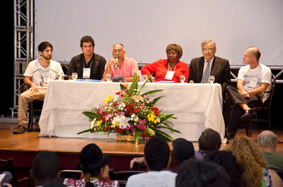Durante quatro dias, realizadores latino-americanos e caribenhos de audiovisual se encontraram em Sobral, região norte do Ceará, para o I Nossas Américas – Nossos Cinemas: I Encontro de Jovens Realizadores da América Latina e do Caribe. A cerimônia de encerramento, que aconteceu no último sábado, 26, no Teatro São João, homenageou o cineasta Humberto Rios e o prefeito do município, Clodoveu Arruda. A noite também contou com a exibição do documentário “Testigos de un Etnocidio: Memorias de Resistencia”, realizado por outra homenageada da noite, a colombiana Marta Rodríguez.