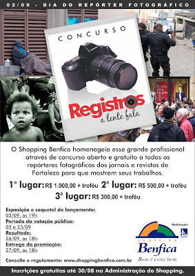 Para homenagear esses profissionais e incentivá-los cultural e artisticamente, o Shopping Benfica idealizou e realiza no mês de setembro o concurso “Registros – a lente fala” que visa a revelar as três imagens que melhor representam a profissão.