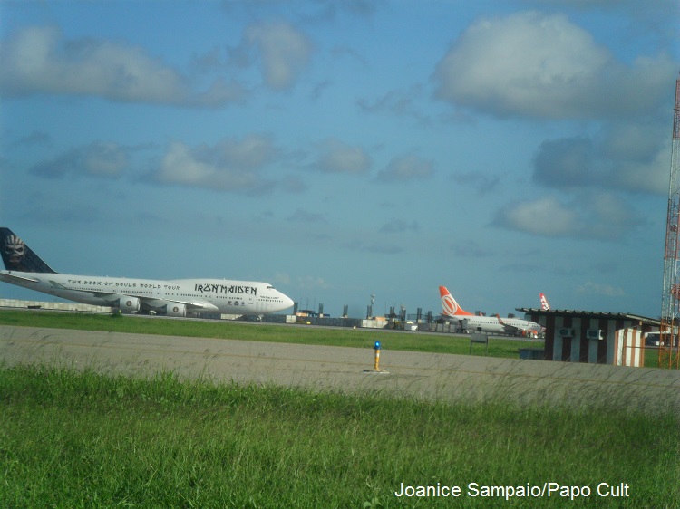 O sonho dos fãs da banda britânica Iron Maiden de ter o show do maior expoente do Metal começou a se concretizar. Na tarde desta quarta-feira, 23, por volta das 16h20, o Boeing 747 Eddie Force One, vindo de Brasília pousou no Aeroporto Internacional Pinto Martins, trazendo os componentes do grupo, equipe técnica e 20 toneladas de equipamentos. A aeronave apresentou defeito nas turbinas na semana passada no Chile e a possibilidade dos fãs cearenses em vê-la pareceu quase remota e para a alegria de todos, os reparos foram feitos a tempo.
