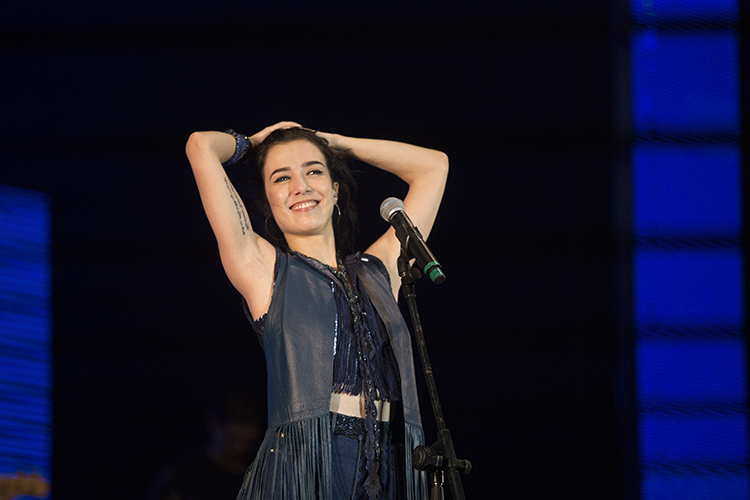 Junto aos veteranos, a atriz e cantora Marjorie Estiano mais que surpreendeu. Mostrando simpatia e segurança, a artista agradou ao público. Destaque para suas interpretações de A Praieira, da Nação Zumbi e Fullgás, de Marina Lima. (Foto: Papo Cult)