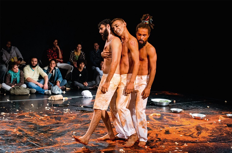 O espetáculo “Prelúdio para Danças Caboclas”, da Cia Balé Baião, de Itapipoca (CE) faz temporada nas quintas-feiras de maio no Teatro Carlos Câmara. O trabalho tem direção de Gerson Moreno e pode ser conferido semanalmente, às quintas-feiras, em duas sessões, 12h30 e 16h, com entrada franca. Em cena três corpos dançantes se fazem “abertos para incorporar” suas ancestralidades: curandeiros, pajés e guerreiros, dançando na vibratória de maracás, tambores, loas e clamores. (Foto: Lucas Soaares)