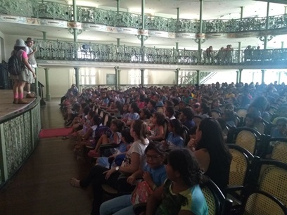 O projeto cultural e arte-educativo “Visita Espetacular – uma aventura no Theatro José de Alencar” completa 15 anos em 2018, e para comemorar a data, apresentará no dia 17 de maio, às 14h, uma sessão especial aberta ao público no palco principal do TJA.A edição de aniversário ocorrerá concomitante à programação Teatro de Portas Abertas. (Foto: Divulgação)