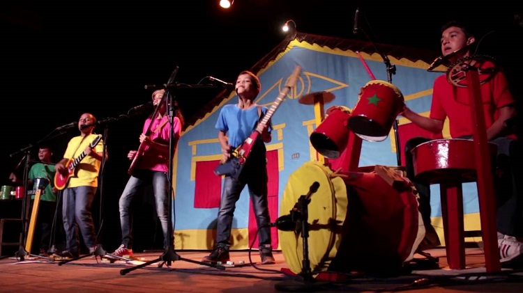 Neste sábado, 9 de junho, o Centro Cultural Banco do Nordeste recebe a Banda de Lata Us Cabinha, formada por crianças e famosa por criar instrumentos a partir de materiais recicláveis, como latas, resto de bicicleta, lixeira, linha de pescar e lona. Além de apresentar seu espetáculo, o grupo vai ministrar oficina e participar de debate cultural. A entrada é gratuita. (Foto: Reprodução)
