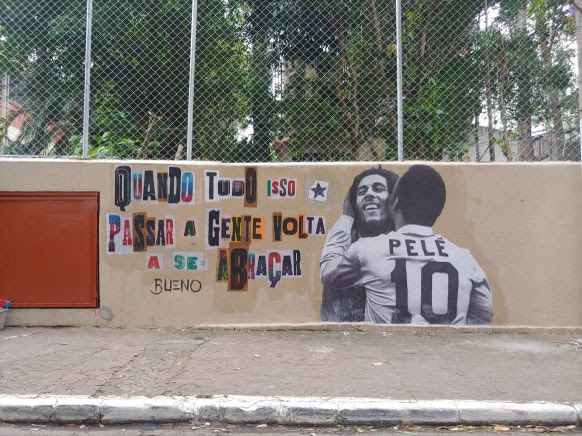 Outro artista a colaborar com arte na ação organizada pela Associação de Moradores de Paraisópolis foi Luis Bueno, famoso pela pintura “Pelé Beijoqueiro”, em que o jogador brasileiro beija diversas personalidades. A obra está espalhada por cidades como São Paulo, Rio de Janeiro, Belém e até Santiago, no Chile, e Londres, na Inglaterra. Para Paraisópolis, ele fez uma obra de colagem em que Pelé beija o cantor Bob Marley.