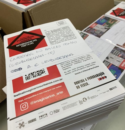 A crise sanitária que o mundo atravessa já tinha dado a linha sobre o formato do evento este ano. Sem possibilidade de ocupar a rua, a ideia era fazer a mostra circular pela cidade usando parte da frota de ônibus urbanos com anúncios dando acesso às obras por meio de QR Code. Mas, com o agravamento da situação e o decreto mais rígido de restrição da circulação de pessoas no Ceará neste mês de março, era preciso reforçar a urgência de ficar em casa. Então o formato mudou, agora o Festival vai chegar com sua programação através dos Correios a 20 mil domicílios localizados em 12 bairros da capital cearense. Parte do material vai chegar às cidades de artistas participantes da mostra como o Crato (CE) e Uruburetama (CE), São Paulo (SP), Rio de Janeiro (RJ), Porto Alegre (RS), Natal (RN) e Campina Grande (PB).