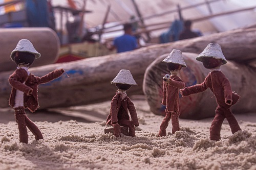 Manifestação cultural tradicional de origem afro-indígena, a dança do coco é típica da região Nordeste, ritmada pelo batuque de instrumentos de percussão, das batidas de palma, dos passos com sapateado e da embolada dançada em roda, com versos entoados pelo mestre e respondido pelos brincantes. No Ceará, a brincadeira é tradição no Iguape, praia localizada a 46 quilômetros de Fortaleza. Atualmente sob a coordenação de Klévia do Iguape, o coletivo Coco de Praia do Iguape com Mestre Chico Casueira foi formado há 30 anos e segue resistindo ao tempo e ao apagamento para manter a tradição da dança ao som do carrom e do enérgico sapateado que envolve crianças e idosos da colônia de pescadores. Com roupas rústicas pintadas com tinta extraída da casca do cajueiro, os coquistas cantam o seu cotidiano. “A dança do coco é um cultivo à festa, à irmandade, à alegria entre os povos e essa integração entre a comunidade e o povo de fora. É uma cultura tradicional, herança de pai para filho, herança dos nossos antepassados, porque corre em nossas veias nossa cultura raiz”, afirma Klévia do Iguape. Com esforços voltados ao público infantil, o grupo se empenha em preservar a memória local e repassá-la às novas gerações.