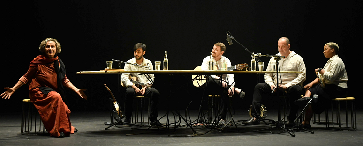 A própria Regina, responsável pelo roteiro, organizou tudo sobre uma ampla mesa, peça central no processo de criação e que acabou sendo o principal elemento cenográfico na montagem teatral, em volta da qual casos e lembranças são compartilhados e ganham calor, cor e som, como acontece mesmo em uma acolhedora mesa de roda de samba, daquelas que adoramos em um boteco ou no quintal de casa. Cenário perfeito para a música produzida graças ao talento de Xeina Barros (voz e percussão), Alfredo Castro (voz e percussão), Vitor Casagrande (voz, cavaquinho e bandolim) e Gustavo de Medeiros / Guilherme Girardi (voz e violão), que dividem o palco com Regina.