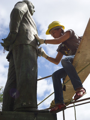 Como exercício desta semana, o grupo aplicará os conhecimentos adquiridos na recuperação da escultura de Gustavo Barroso, localizada na praça de mesmo nome. Segundo a coordenadora pedagógica Francineide Chaves, a escultura de corpo inteiro de Gustavo Barroso foi escolhido pelo fato do cearense ter representado o Brasil em várias missões diplomáticas, entre as quais a Comissão Internacional de Monumentos Históricos, além de ter sido um importante membro da Academia Brasileira de Letras. “Foi um homem que se destacou com vasta produção literária, produzindo cento e vinte e oito títulos que tratam sobre assuntos diversos, entre História, folclore, ficção, biografias, memórias, política, arqueologia, museologia, economia, crítica e ensaio, além de dicionário e poesia”, afirma a coordenadora.