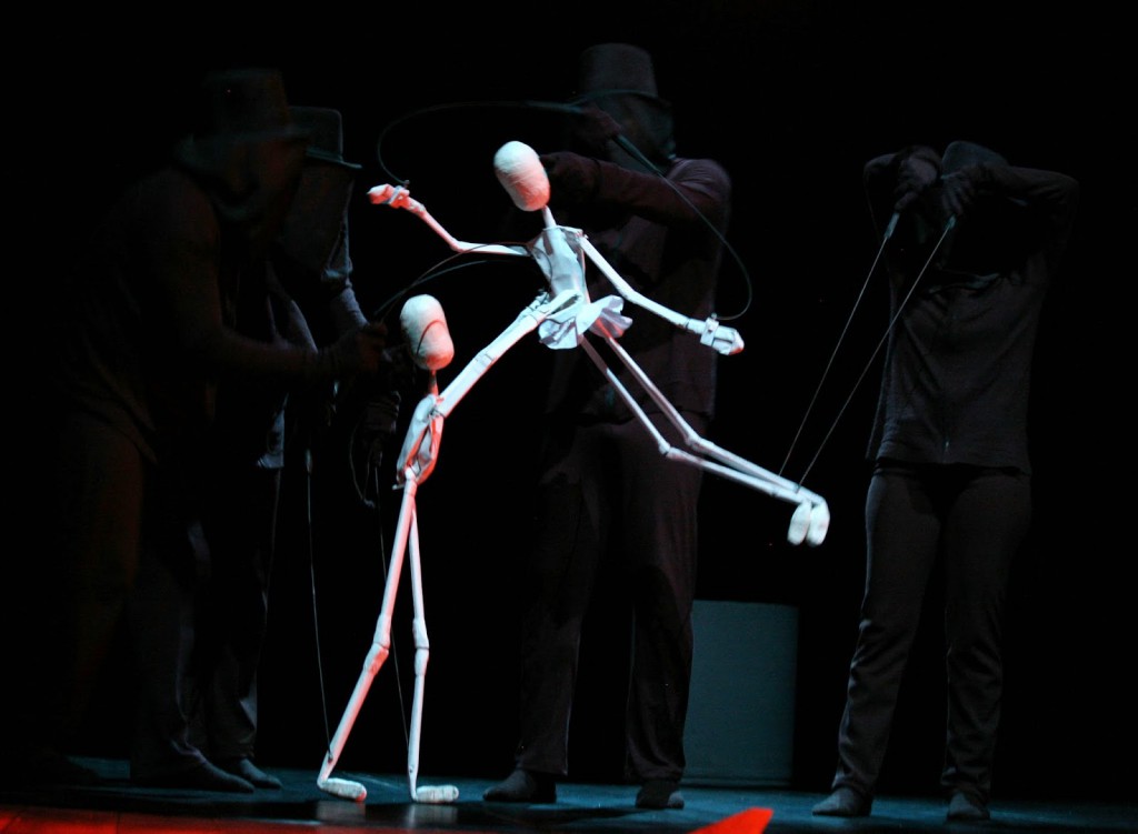 Papéis brancos ganham formas geométricas e são transmutados em figuras cênicas que, meticulosamente animadas, ganham vida. Como seres imbuídos da existência, buscam o outro num impulso vital. O espetáculo Criaturas de papel fala de encontros e partidas enquanto força fundamental do pulso de existir e habitar espaços e construir vínculos no percurso de viver. A ação cênica se dá a partir de um refinado processo de animação de marionetes inspirado no trabalho do grupo japonês Kawasemiza, em que duas ou três marionetes animam o mesmo boneco, conferindo-lhe movimentos humanos precisos e permitindo excelentes possibilidades de expressão cênica.