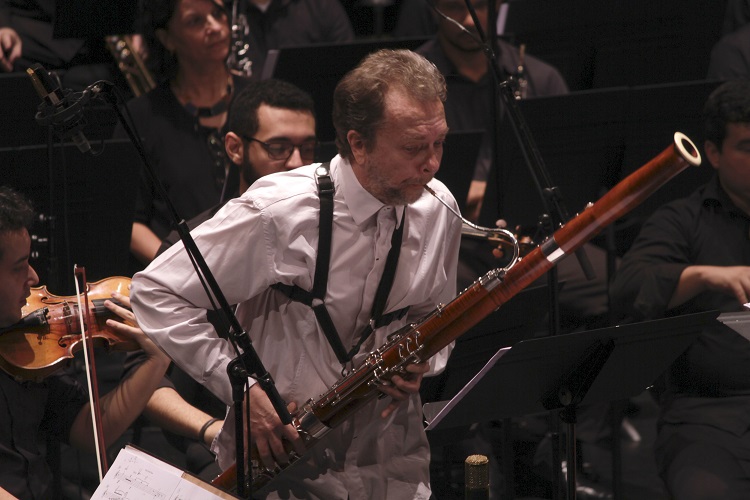 Outro nome de relevo da cena contemporânea, Pauxy Gentil-Nunes dedica ao fagotista Aloysio Fagerlande sua composição “Variações para fagote e orquestra”, escrita em 2014. Como o título indica, é uma coleção de variantes de uma estrutura fixa, composta por 12 sonoridades, que se apresentam em ordem inalterada por toda a obra e sem sofrer nenhum tipo de derivação. Este procedimento, aparentado da chacona e da passacaglia, tem sido usado desde 1985 em algumas peças como uma maneira de produzir superfícies e texturas variadas, em concepção rapsódica e eclética, porém conectadas por um princípio unificador forte, que se situa entre uma série e um sistema harmônico. A distribuição das texturas foi organizada de forma sistemática com o uso da Análise Particional, teoria analítica e composicional do mesmo autor.