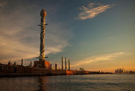 Chegando ao Marco Zero, uma boa pedida é entrar na embarcação que sai do pequeno píer do local e cruza o Estuário do Porto do Recife para apreciar o Parque das Esculturas. Composto por mais 90 peças assinadas pelo artista plástico Francisco Brennand, o local tem como destaque a Coluna de Cristal, confeccionada em argila e bronze, com 32 metros de altura e inspirada em uma flor descoberta por Burle Marx.