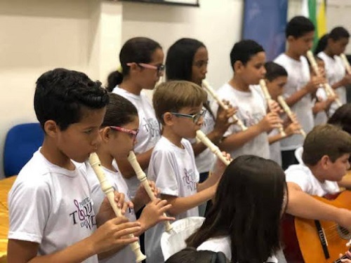 O projeto Um Toque de Vida, que consiste em aulas gratuitas de música para voltado para crianças e adolescentes da Região Metropolitana de Fortaleza e do interior do Estado do Ceará acaba de encerrar sua quinta edição. Foto: Divulgação