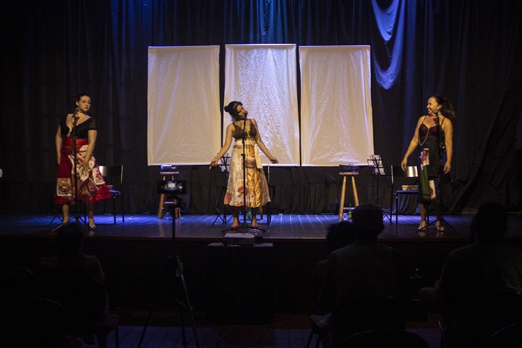 Com direção de ngela Moura, “Madonas” é uma produção teatral no formato de um pocket-show de 50 minutos de duração. Um manifesto de natureza narrativa e persuasiva, uma espécie de declaração pública e explícita de três mulheres anônimas, com intenções objetivas, que desejam falar principalmente para outras mulheres.