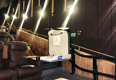 Uma outra novidade que a rede preparou para tornar o cinema ainda mais inclusivo foi a instalação de uma plataforma de acessibilidade automática para pessoas com deficiência física em todas as três salas do Kinoplex Leblon Globoplay, no Rio de Janeiro, permitindo que cadeirantes possam acessar com mais facilidade o seu local preferido para viver a experiência do cinema.