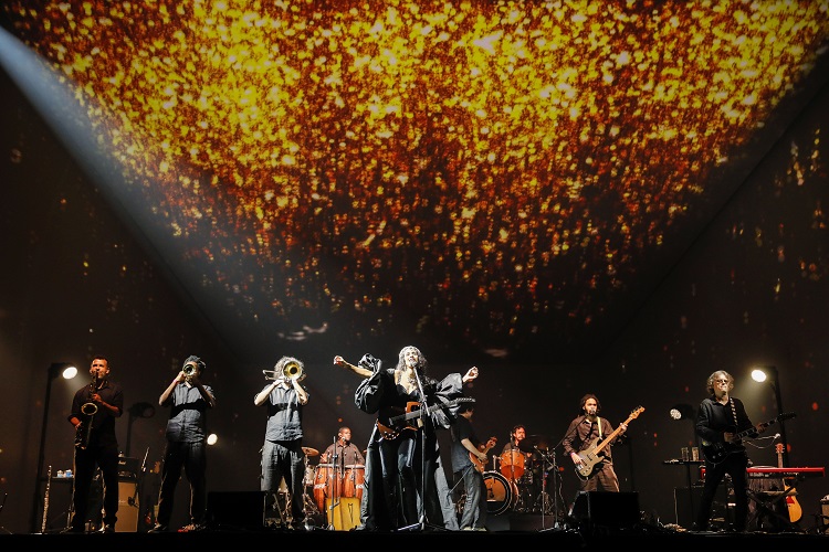 Com direção e concepção visual de Marisa Monte, Cláudio Torres e Batman Zavareze, no palco Marisa é acompanhada por Dadi (baixo, teclado e guitarra), Davi Moraes (guitarras), Pupillo (bateria), Pretinho da Serrinha (percussão, cavaquinho e voz), Chico Brown (teclado, guitarra, baixo e voz), Antonio Neves (trombone, adaptações e arranjos de metais), Eduardo Santanna (trompete e flugelhorn) e Lessa (flauta e sax).