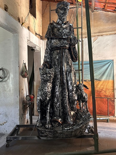 Fortaleza ganha mais uma estátua dedicada aos santos da católicos. E no mês em que homenageia-se São Francisco de Assis, o padroeiro dos animais e da natureza, ganha estátua de autoria do escultor e artesão Edismar Arruda, conhecido por dar nova vida para peças de sucata automotivas e de metal. A obra será inaugura nesta sexta-feira, 25, às 17h45, em frente à Farmácia Pague Menos da Praia de Iracema, próximo ao Aterro do Ideal. Foto: Divulgação.