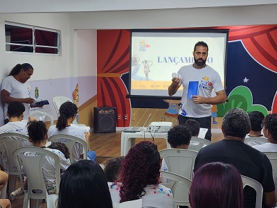 Além de Emrah Kartal, participaram do lançamento Luana Viana, supervisora pedagógica, e Fábio Antônio Lessa, produtor local do projeto e presidente do Instituto Cai Cai Balão, que reforçou o compromisso coletivo com a formação artística das infâncias do bairro.